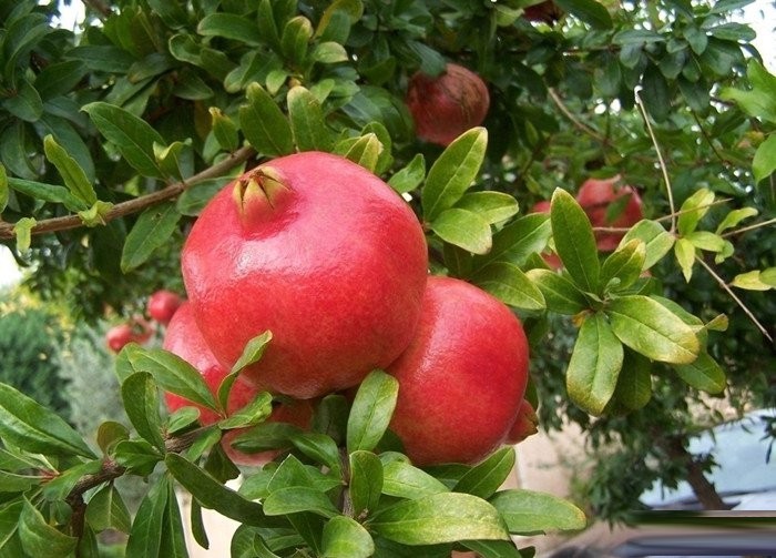 石榴(拉丁名:Punica granatum L.)落叶乔木或灌木;单叶,通常对生或簇生,无托叶。花顶生或近顶生,单生或几朵簇生或组成聚伞花序,近钟形,裂片5-9,花瓣5-9,多皱褶,覆瓦状排列;胚珠多数。浆果球形,顶端有宿存花萼裂片,果皮厚;种子多数,浆果近球形,果熟期9-10月。外种皮肉质半透明,多汁;内种皮革质。
