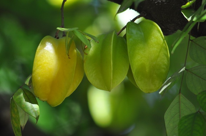 阳桃(学名:Averrhoa carambola L.)是酢浆草科阳桃属植物,乔木,高可达12米,分枝甚多;树皮暗灰色,内皮淡黄色。奇数羽状复叶,互生,全缘,卵形或椭圆形。花小,微香,数朵至多朵组成聚伞花序或圆锥花序,自叶腋出或着生于枝干上,花枝和花蕾深红色。浆果肉质,下垂。种子黑褐色。花期4-12月,果期7-12月。